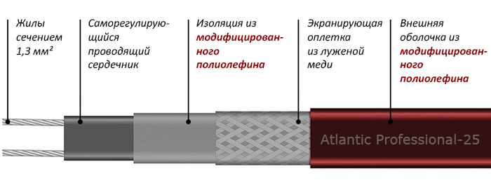 Кабель нагревательный саморегулирующийся Atlantic Professional-25
