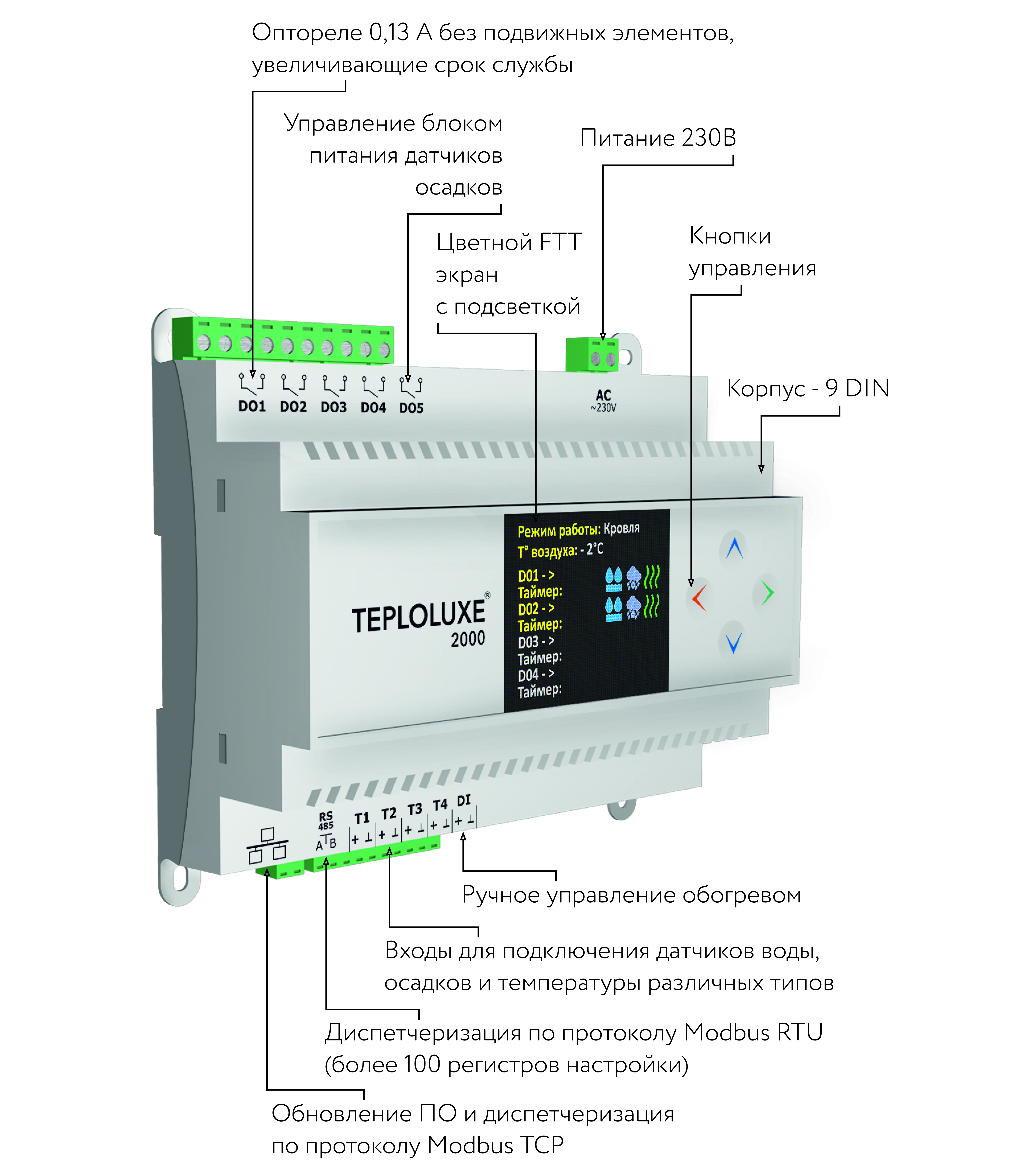 Предназначен для управления системами автоматического обогрева. Используется для управления системами антиобледенения кровли и открытых площадок, обогрева трубопроводов и резервуаров, а также системами обогрева помещений (электрическими нагревательными кабелями,плёночными и другими электронагревателями).