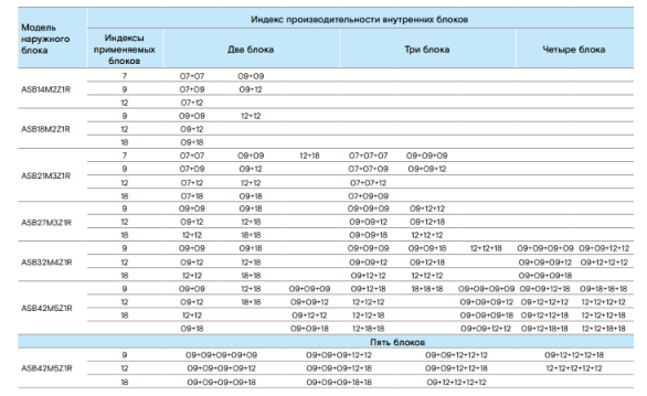 При подключении нескольких внутренних блоков, суммарная производительность которых превышает номинальную мощность наружного блока, при одновременной эксплуатации каждый из них будет работать со сниженной производительностью. Такой вариант подключения допускается в случае, когда внутренние блоки используются не одновременно (например, ночью – спальня, днем – гостиная).