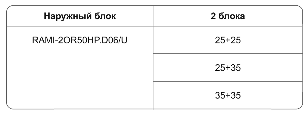 При подключении нескольких внутренних блоков, суммарная производительность которых превышает номинальную мощность наружного блока, при одновременной эксплуатации каждый из них будет работать со сниженной производительностью. Такой вариант подключения допускается в случае, когда внутренние блоки используются не одновременно (например, ночью – спальня, днем – гостиная).