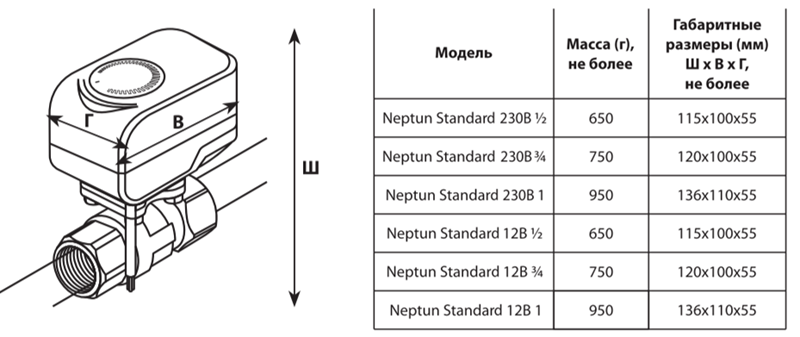 Шаровой кран с электроприводом Neptun Standard 12В 3/4"