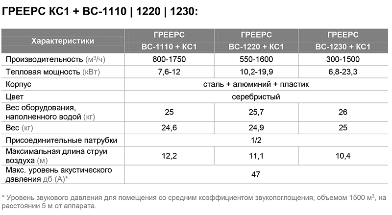 тепловентиляторов ГРЕЕРС ЕС-12, ГРЕЕРС ВС-1110, ГРЕЕРС ВС-1220, ГРЕЕРС ВС-1230
