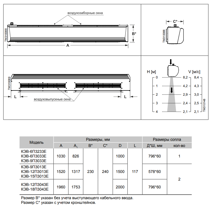 Воздушно-тепловая завеса Тепломаш КЭВ-6П3233Е серии 300 Бриллиант