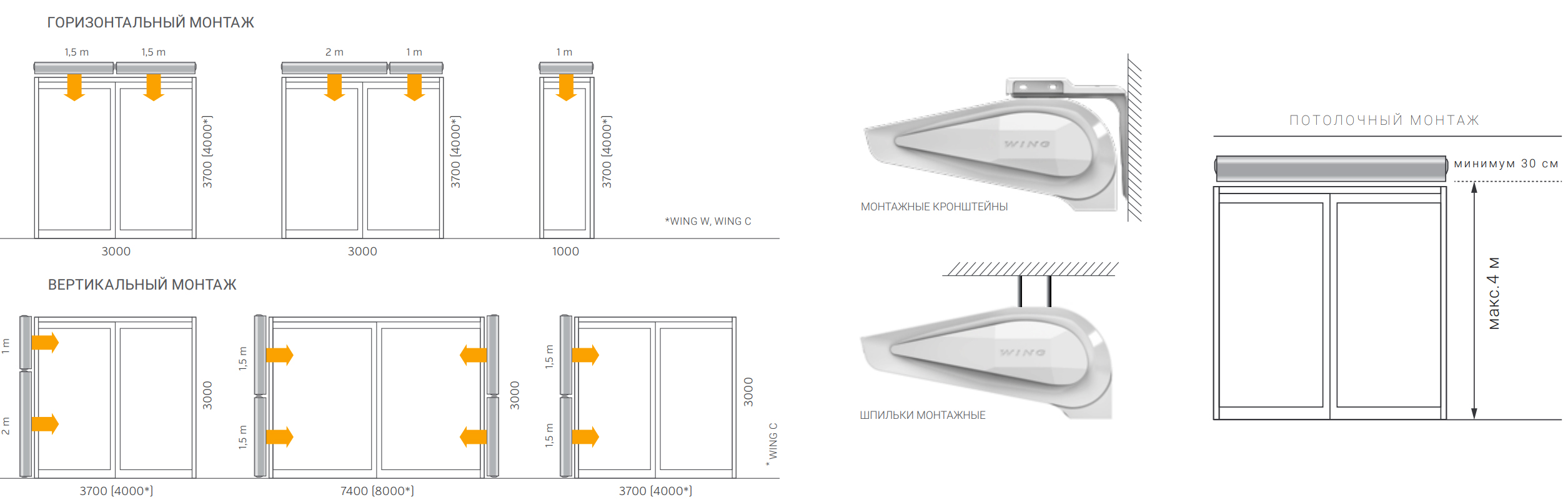 • Горизонтальный и вертикальный монтаж — установка над проемом или сбоку от него.