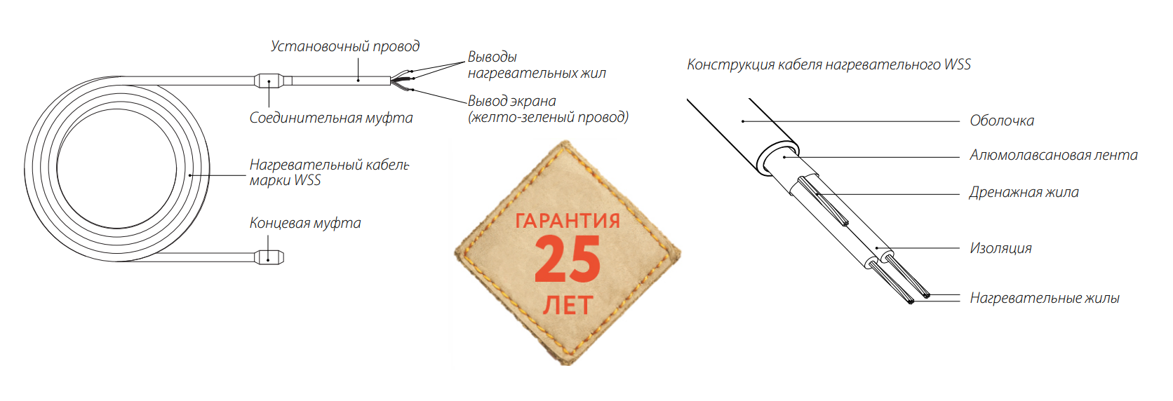 Российский двухжильный экранированный кабель предназначен для комфортного и основного обогрева пола в сухих и влажных помещениях различного типа и назначения. Небольшой диаметр в 4,7 мм позволяет укладывать секцию в стяжку толщиной 3-5 см. или в слой плиточного клея 5-8 мм. Срок службы кабеля более 30 лет.