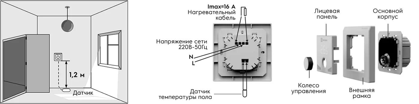 Стильный и современный терморегулятор с механическим управлением и встроенным Wi-Fi, рекомендован для управления системами «теплого пола» на основе электрического нагревательного кабеля или инфракрасной пленки. Регулирование температуры в диапазоне от +5°С до +45°С с шагом 0,1°С. Размещается внутри помещения, степень пылевлагозащиты IP20. Имеет автоматическое отключение в случае короткого замыкания. Подходит под рамки розеток других производителей, имеющие стандартный размер 58 х 58 мм.