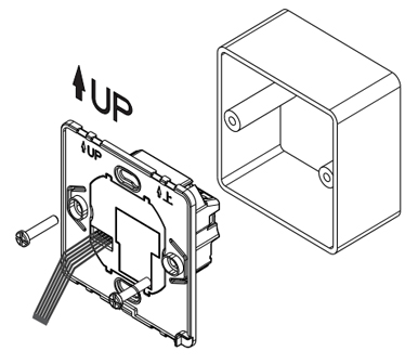 3. С помощью отвертки и шурупов закрепите заднюю часть терморегулятора в монтажной коробке. Затем убедитесь, что корпус терморегулятора не деформирован. Предлагаемый крутящий момент составляет 0,2 – 0,4 Н x м (2,0 – 4,1 кгс x см).
