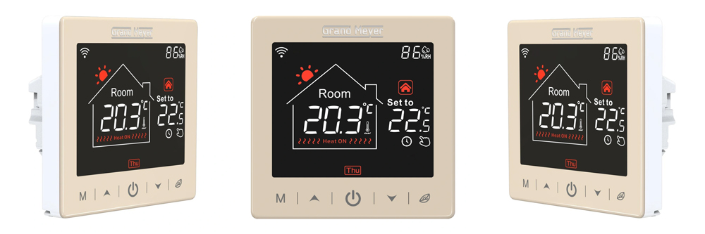 Линейка современных терморегуляторов Grand Meyer SN с функцией удаленного доступа по сети Wi-Fi предназначены для управления системами теплых полов. Укомплектован выносным датчиком температуры пола и оснащен встроенным датчиком температуры воздуха, на основании показаний которых происходит автоматическое поддержание заданной температуры. Устанавливается в стандартный подрозетник. Модель имеет большой информативный сенсорный дисплей, выполнена в 3 цветах – белый, золотой (шампань) и черный.