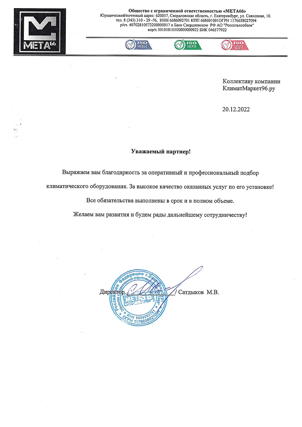 Для нас важно, чтобы наши клиенты как можно дольше могли пользоваться приобретенным у нас оборудованием, поэтому к подготовке и выполнению монтажных работ мы подходим очень ответственно. Профессиональная установка и качественные расходные материалы в компании КлиматМаркет96 позволят работать кондиционеру весь срок службы, выдерживать пиковые нагрузки в летний период.