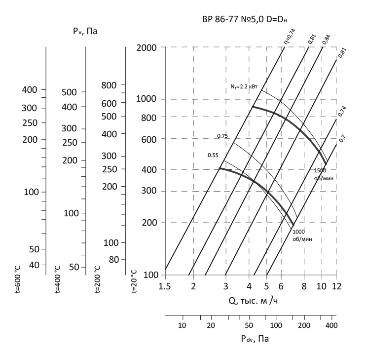 Радиальный вентилятор низкого давления ВР 86-77 / №5,0 / 2,2 кВт / 1500 об./мин. / Прав / 0°